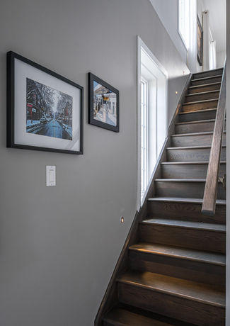 The main open concept living space is wrapped in natural light. High ceilings, huge windows and open staircase create an historic loft style feel. The large living room area enjoys walk out to sizeable balcony perfect for summer barbecues. The entertainers kitchen offers large quartz island, stainless steel appliances including gas range, ample cupboards, pot drawers and timeless finishes. Dining room with city views can easily accommodates gracious dinner parties.